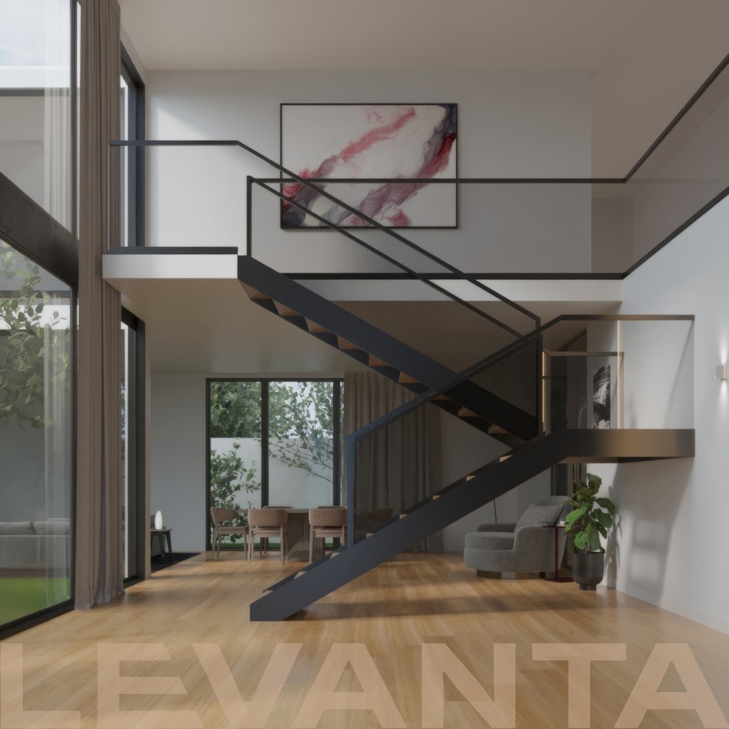 Создаём индивидуальную концепцию лестницы с учётом архитектуры дома. Подготавливаем детализированную 3D-визуализацию, чтобы вы заранее увидели результат.